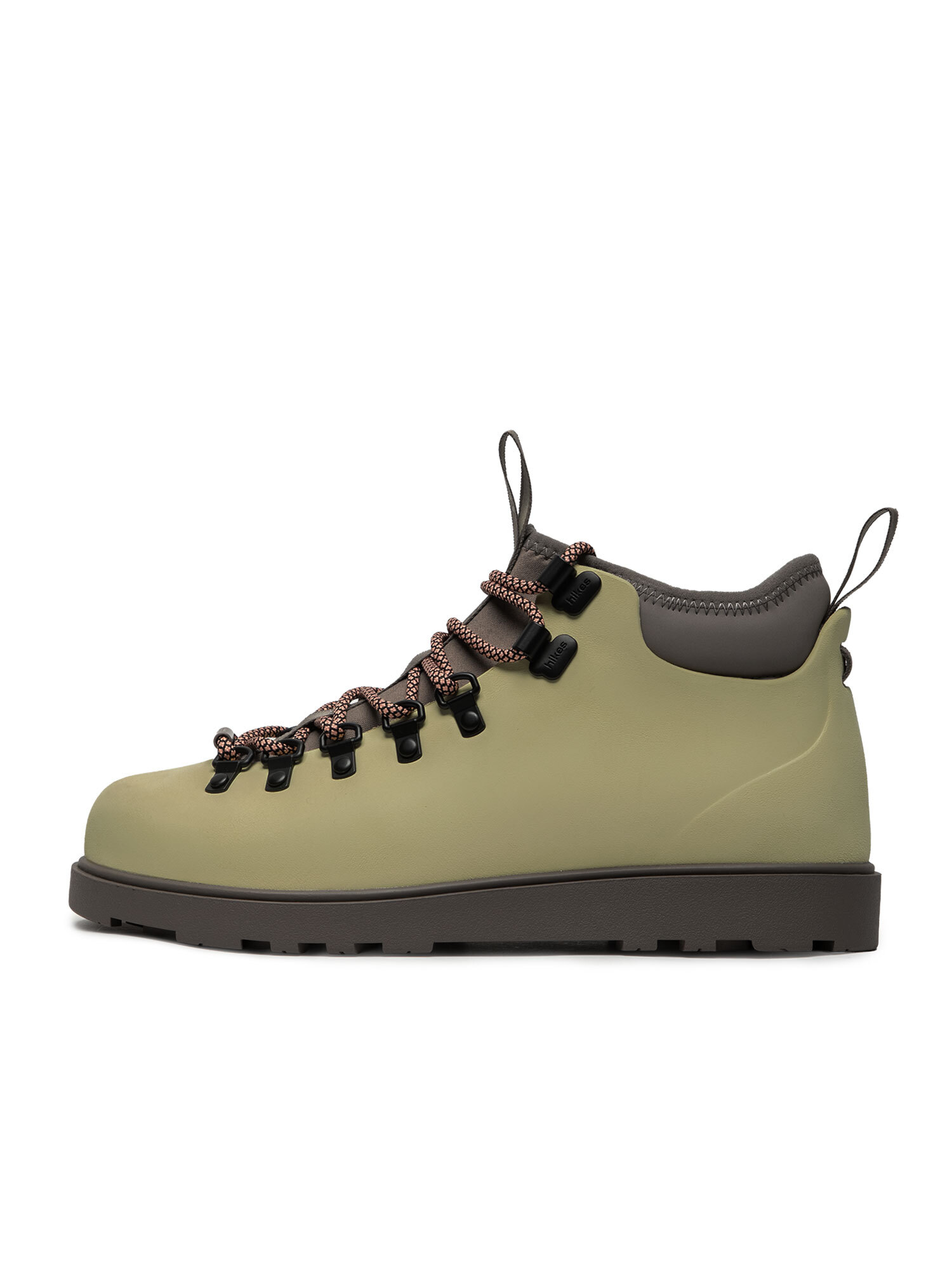 Ботинки Hikes созданы с применением аутдор-технологий для носки в городе. Верх выполнен из водонепроницаемого материала EVA, внутренний носок из неопрена сохраняет сухость и комфорт. Износостойкая подошва из TPE подходит для разных погодных условий, а ребристая подметка минимизирует скольжение. Ортопедическая стелька O-Therm от OrthoLite обеспечивает амортизацию и отводит лишнюю влагу. Вся упаковка перерабатываемая, в комплекте — дополнительные шнурки и инструкция по уходу.